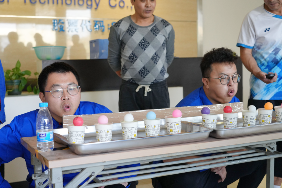 而在“吹牛皮”項(xiàng)目中,參賽者們展開的是肺活量與呼吸控制能力的激烈比拼。此項(xiàng)目看似簡單質(zhì)樸,實(shí)則需要極大的耐力與高超技巧。參賽者們鼓起腮幫,奮力吹動(dòng)乒乓球。觀眾們則屏息凝神,為每次將乒乓球一掃而空的精彩瞬間歡呼雀躍,場面緊張而又刺激萬分。